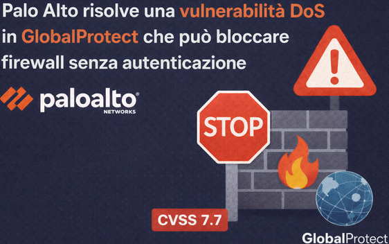 Palo Alto Networks ha pubblicato aggiornamenti di sicurezza per correggere una vulnerabilità ad alta gravità nel software PAN-OS che interessa la funzionalità GlobalProtect (Gateway e Portal). La falla, identificata come CVE-2026-0227 e classificata con un punteggio CVSS di 7.7/10, può consentire a un attaccante remoto non autenticato di causare una condizione di diniego di servizio (DoS) sul firewall.